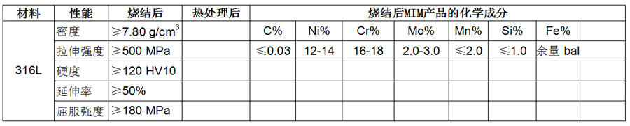 金屬粉末注射成型mim材料表